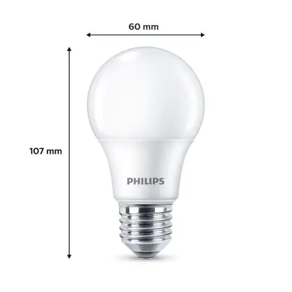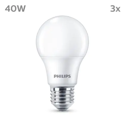 Die Mehrfachpackung 3x Philips Glühbirne LED E27 Birne Matt 5W 470lm - 827 Extra Warmweiß ist eine effiziente E27 LED-Lampe und der perfekte Ersatz für Ihre konventionellen W Lampen mit E27-Sockel. Zudem strahlt sie Licht in der Farbtemperatur 2700K - Extra Warmweiß aus und punktet durch eine lange Lebensdauer.