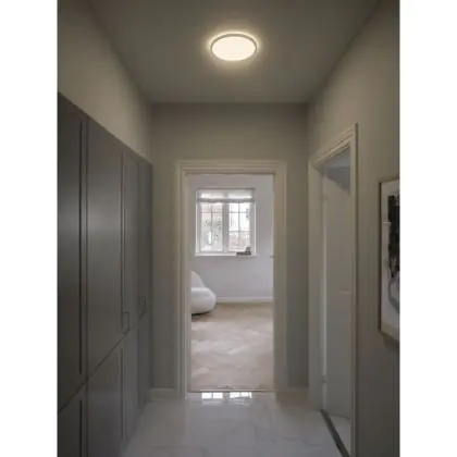 Die LED-Deckenleuchte von Nordlux stammt aus der Modellreihe Oja und zeichnet sich durch ein modernes und minimalistisches Design aus. Die Leuchte überzeugt zudem mit einer extra warmweißen Farbtemperatur, einer langen Lebensdauer und der zweithöchsten Farbwiedergabestufe.