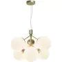 Bei der Pendelleuchte Ivona handelt es sich um eine Neuinterpretation eines klassischen Kronleuchters, wobei das traditionelle Design durch einen etwas organischeren und moderneren Look akzentuiert wird. Mit 6 Glaskugeln strahlt Ivona ein tolles Licht aus, das für einen modernen und extravaganten Stil sorgt. Die Kombination aus Messing und Opalglas schafft einen glamourösen und eleganten Designausdruck. Das Glas dieser Leuchte ist mundgeblasen und handgefertigt. Aufgrund dieses einzigartigen Verfahrens können im Glas Luftblasen entstehen und die Dicke des Glases kann ebenfalls variieren. Dies verleiht dem Glas seinen einzigartigen Charakter und sein lebendiges Erscheinungsbild.