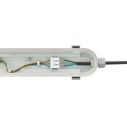 Die LED-Feuchtraumleuchte hat einen niedrigen Energieverbrauch von nur 28 Watt und ersetzt somit herkömmliche Leuchten mit zwei 36 W Fassungen. Aufgrund der höheren Effizienz sparen Sie rund 65 % Energiekosten ein.